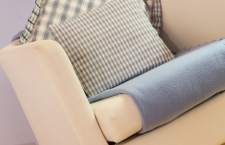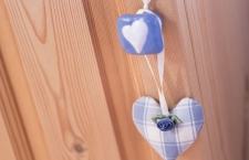 Der Holzfußboden und die schräge Decke mit Holzbalken bilden einen schönen Rahmen für die handgemachten Accessoires im typisch Südtiroler Stil.