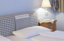 Schon beim Betreten des Zimmers L‘Azzurra wird man sofort von einem wohligen Gefühl der Entspannung und Ruhe empfangen.