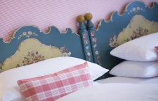 La stanza è arricchita da elementi di design che partono dal rosa chiaro e arrivano al verde scuro, creando un percorso cromatico dalle soluzioni originali e accoglienti.